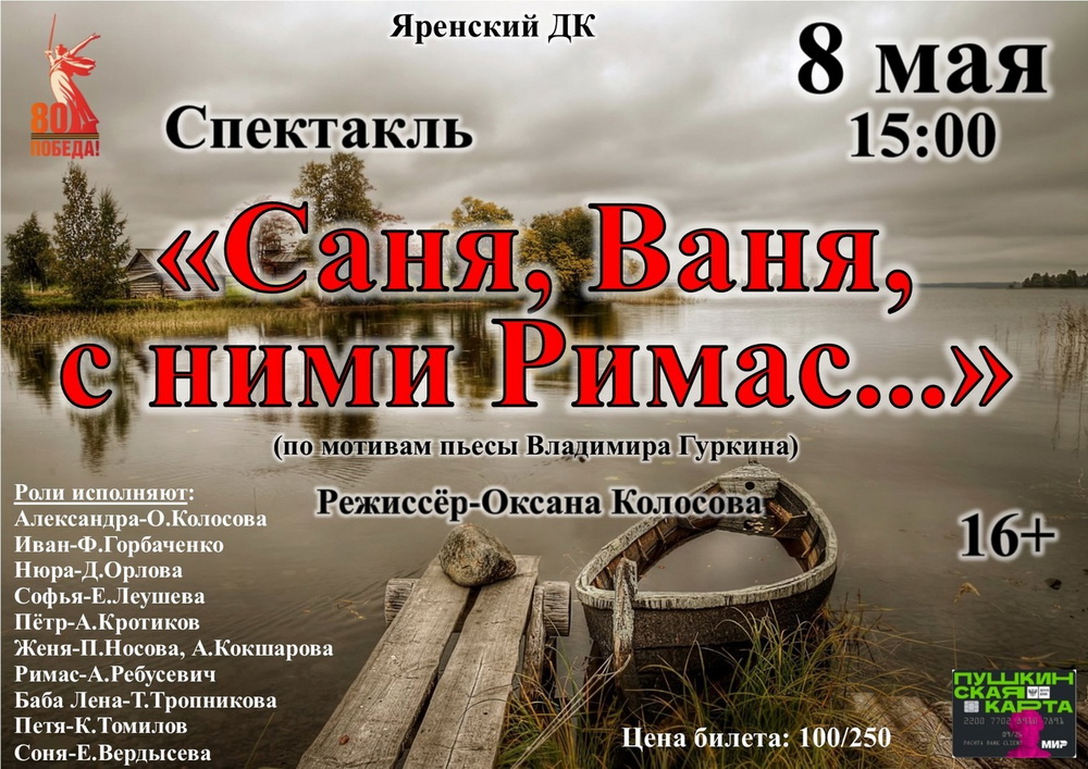 8 мая 2025 года в Яренском ДК был показан спектакль по пьесе Владимира Гуркина "Саня, Ваня, с ними Римас".