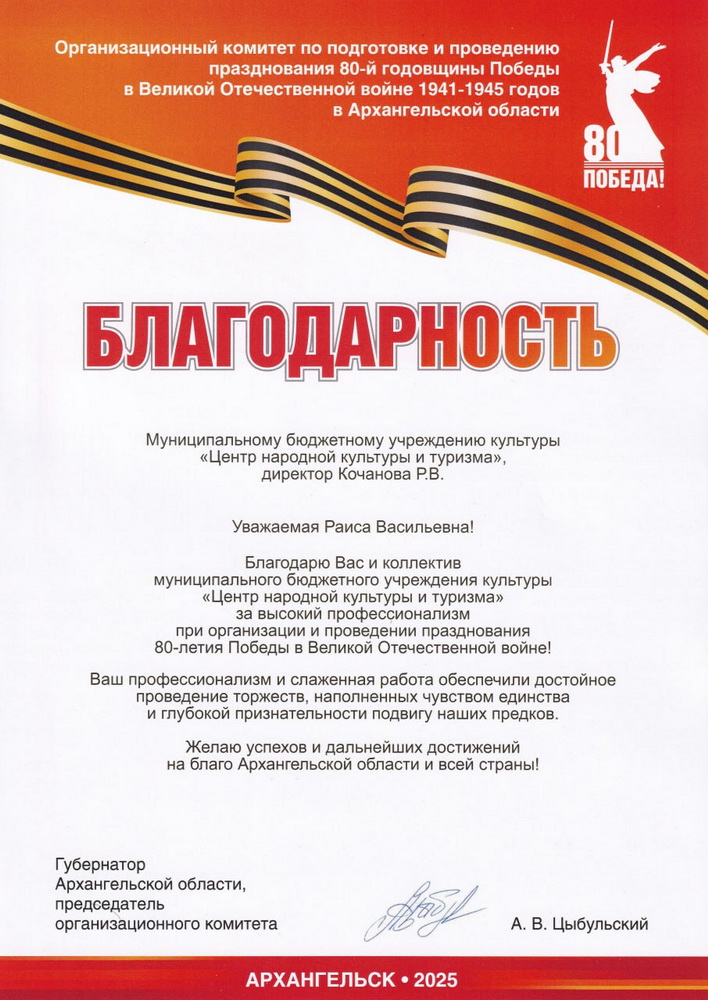 Съезд открыл Губернатор области А. Цыбульский поздравлением работников культуры, а министр культуры О. Светлова вручила нам свидетельство победителя конкурса на лучшее учреждение культуры Архангельской области.
