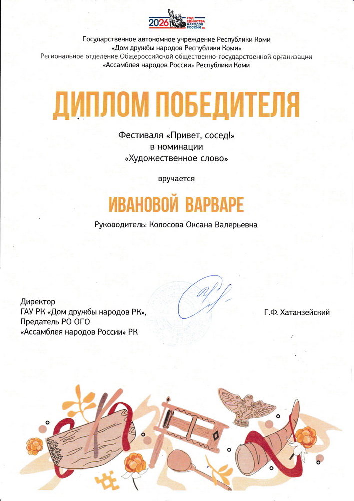 Дом дружбы народов Республики Коми, огромное Вам спасибо за приглашение.